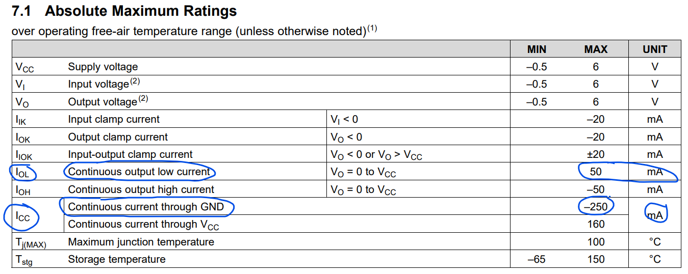 IOL is the continuous output low current drive for a single IO. This cannot exceed 50 mA and is recommended to stay below 25 mA for recommended use cases.